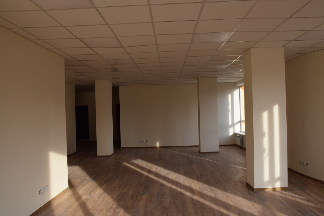 | ПЛОЩАДЬ ОФИСА | Общая площадь 102,3 кв. метра. Каждый офис состоит из просторного помещения с санузлами и кухней |